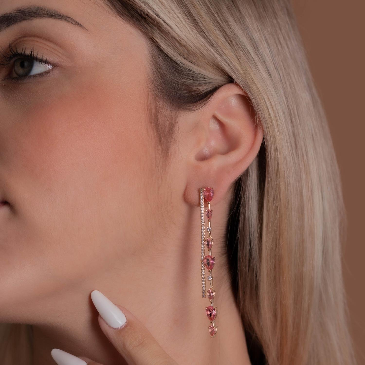 Bri-1142-Do Brinco Longo Cravejado Cristal + Rosa.