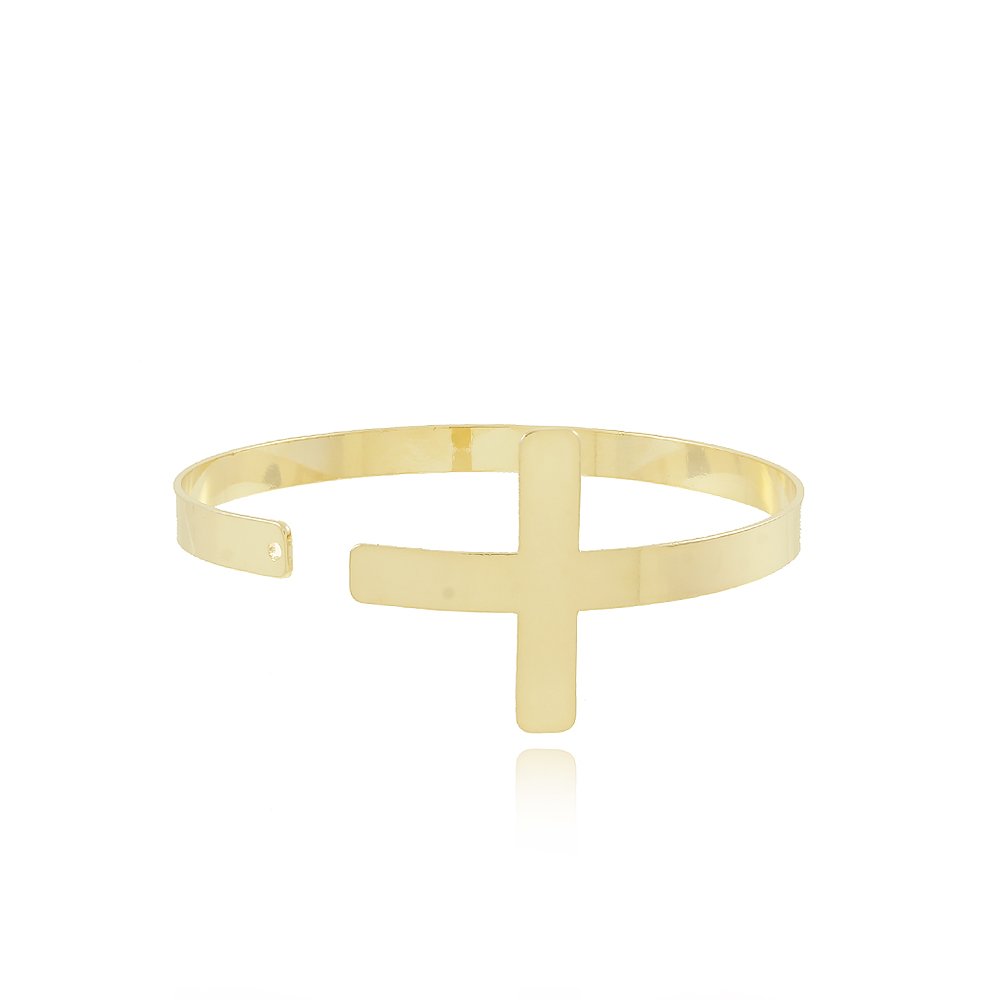 Encante-se com esse bracelete!Este lindo bracelete LISO DE CRUZ é feito com LATÃO BANHADO A OURO 18K de alta qualidade.