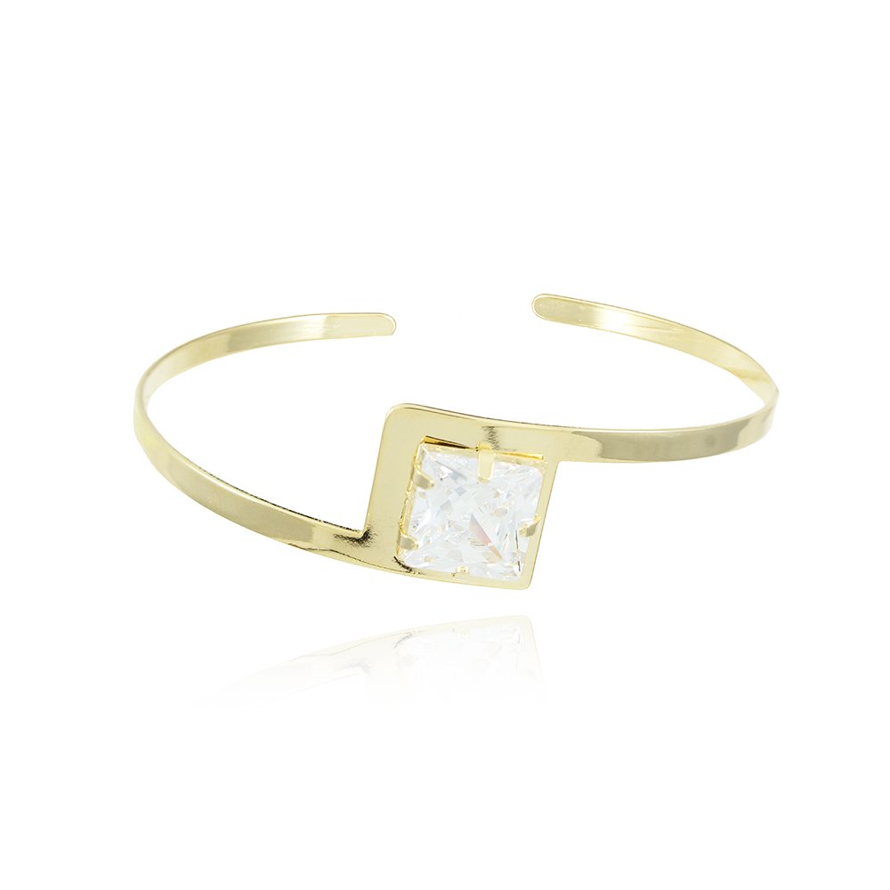 Encante-se com esse bracelete!Este Bracelete Rígido com Pedra Quadrada Cristal. é feito com LATÃO BANHADO A OURO 18K de alta qualidade.
