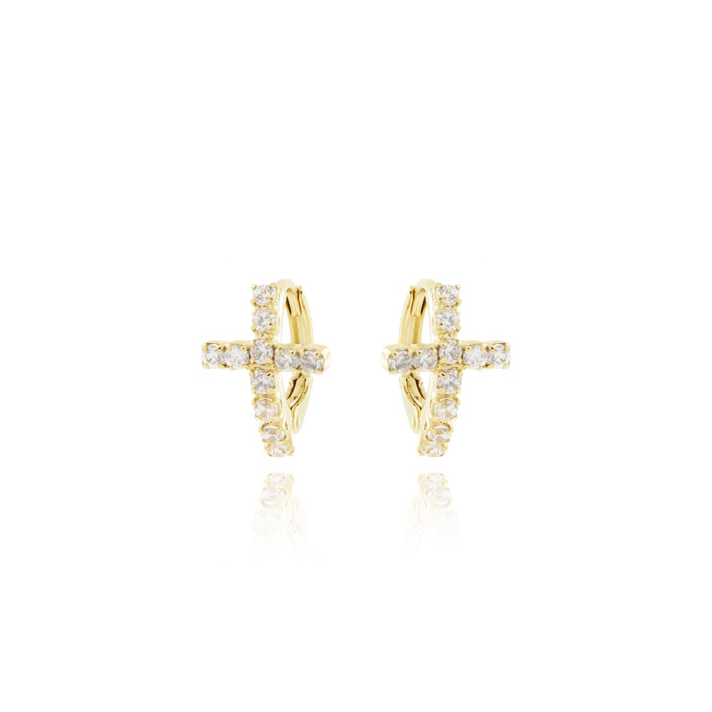 Brt-3182-Do Brinco De Argola Articulada De Cruz Cravejada De Zircônias. Brt-3182-Do Brinco De Argola Articulada De Cruz Cravejada De Zircônias.