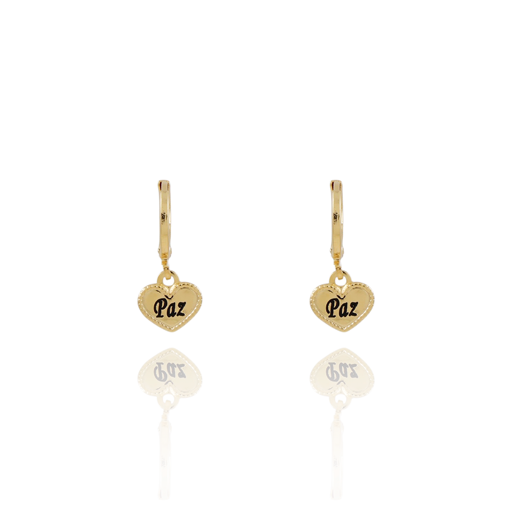 Encante-se com esse brinco!Este lindo brinco DE ARGOLA ARTICULADA DE CORAÇÃO PAZ COM RESINA PRETA é feito com LATÃO BANHADO A OURO 18K de alta qualidade.