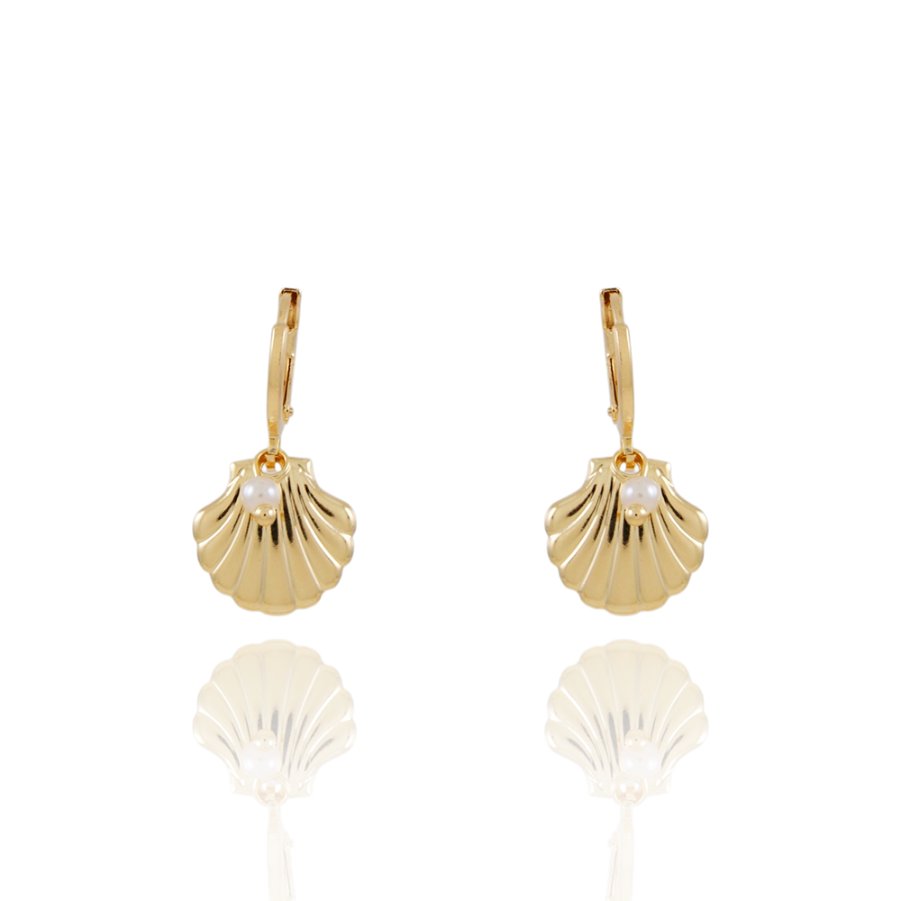Encante-se com esse brinco!Este lindo brinco DE ARGOLA ARTICULADA DE CONCHA E PÉROLA é feito com LATÃO BANHADO A OURO 18K de alta qualidade.