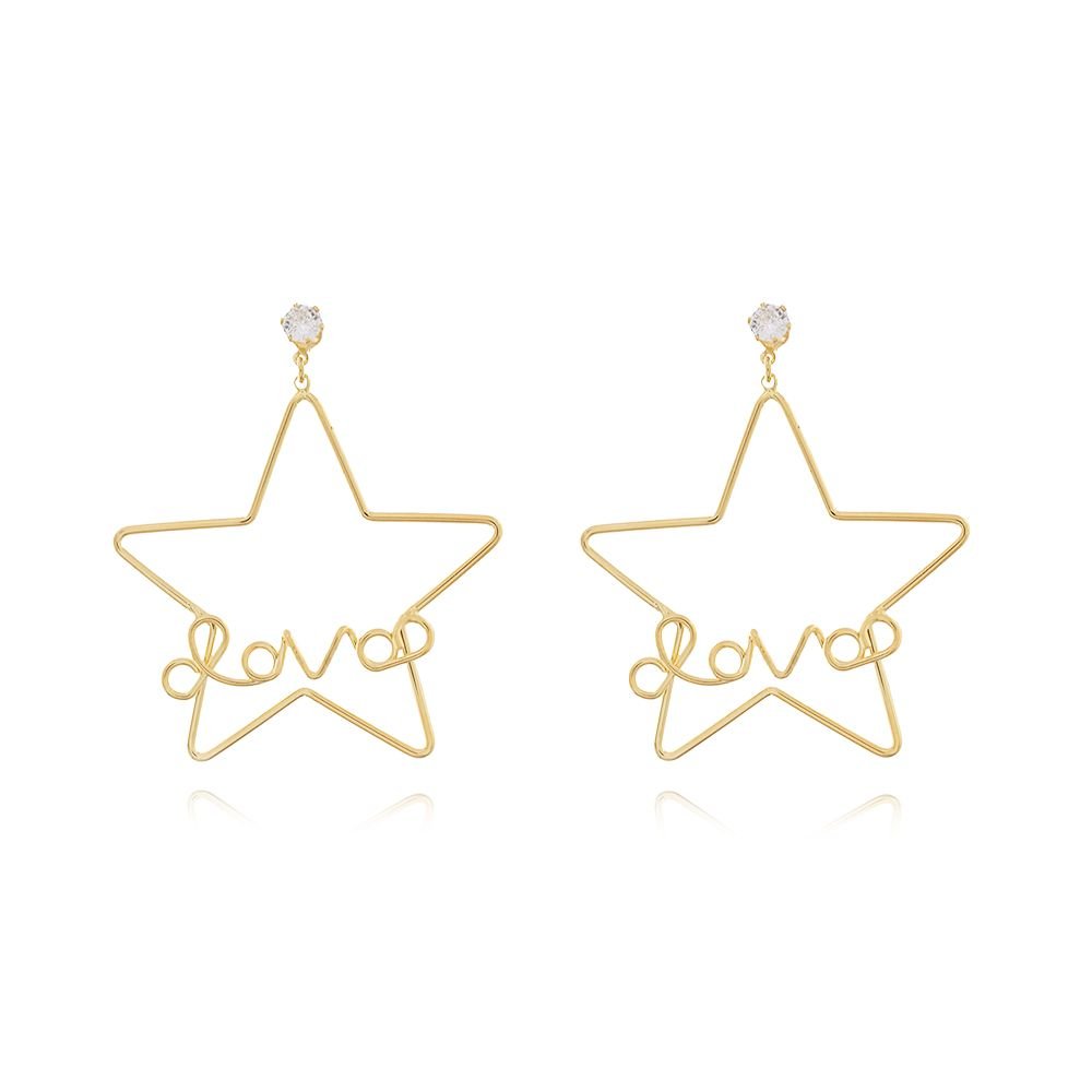 Brt-6686-Do Brinco De Estrela Vazada Escrito Love