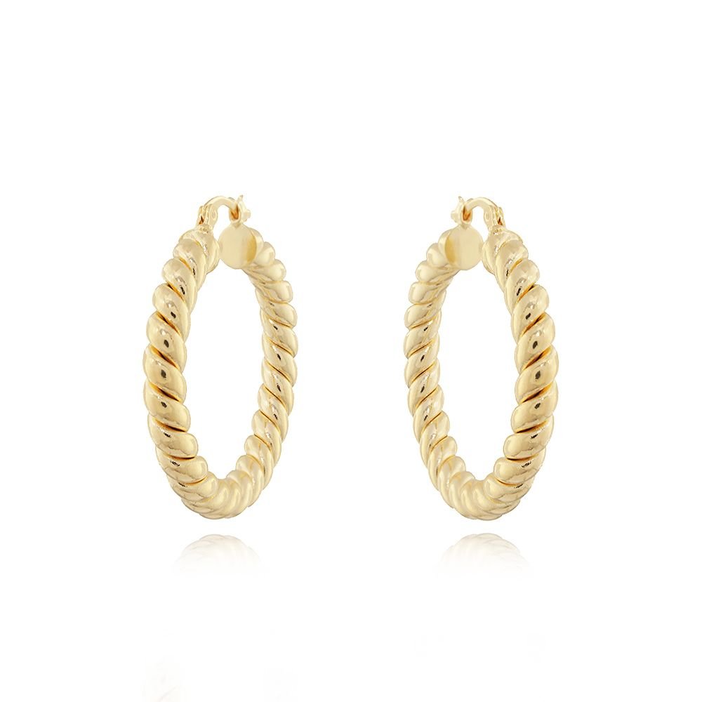 Encante-se com esse brinco!Este lindo brinco de ARGOLA TORCIDA COM FECHO ITALIANO é feito com LATÃO BANHADO A OURO 18K de alta qualidade.