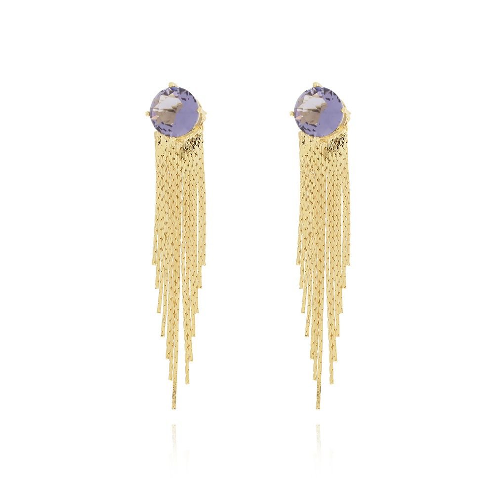 Brinco de zircônia cravejada com franja lilas.Dimensões: / Peso: