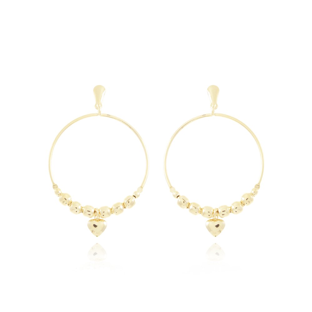 Encante-se com esse brinco!Este lindo brinco LONGO REDONDO COM DETALHE DE CORAÇÃO é feito com LATÃO BANHADO A OURO 18K de alta qualidade.