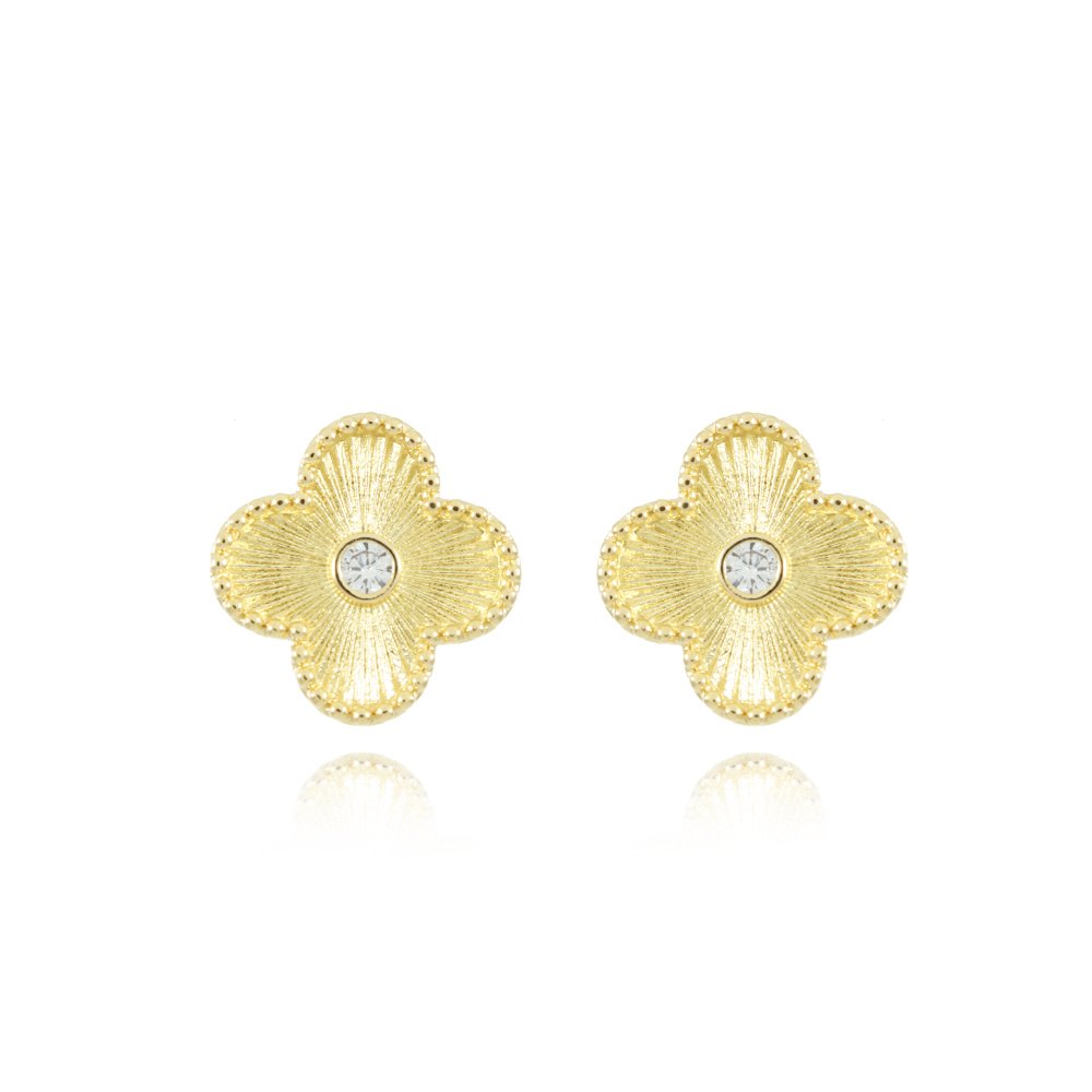 Encante-se com esse brinco!Este lindo brinco TREVO COM ZIRCÔNIAS é feito com LATÃO BANHADO A OURO 18K de alta qualidade.