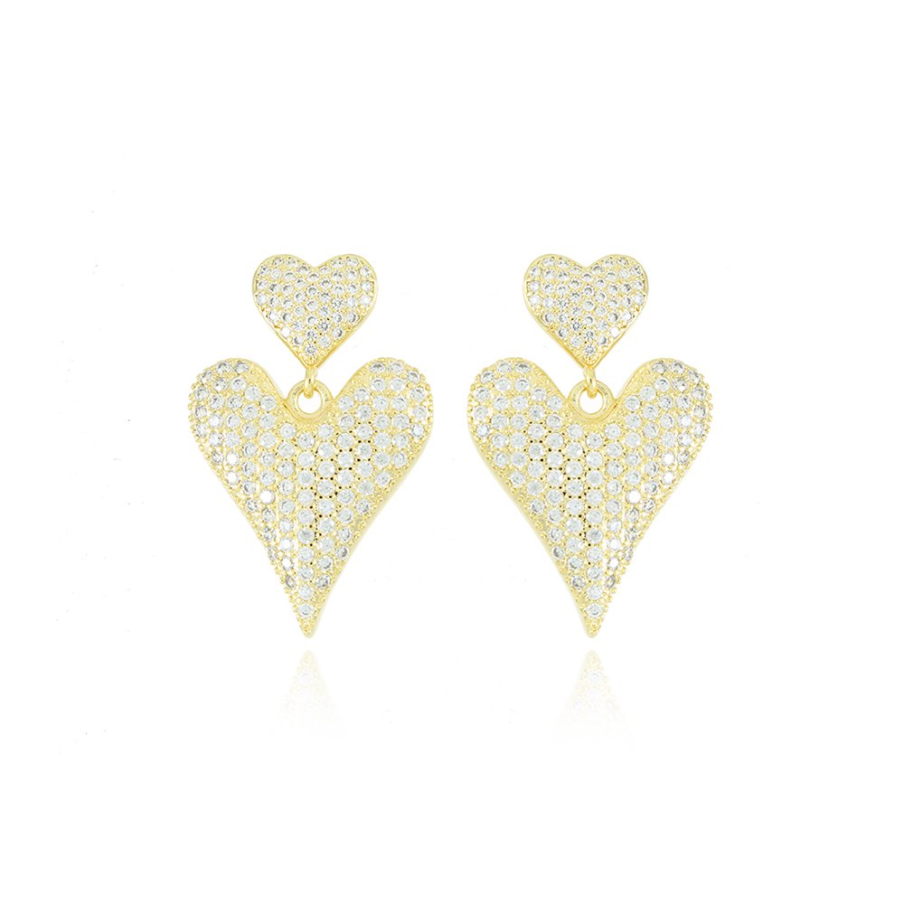 Encante-se com esse brinco!Este lindo brinco CORAÇÃO CRAVEJADO DE ZIRCÔNIAS CRISTAIS é feito com LATÃO BANHADO A OURO 18K de alta qualidade.