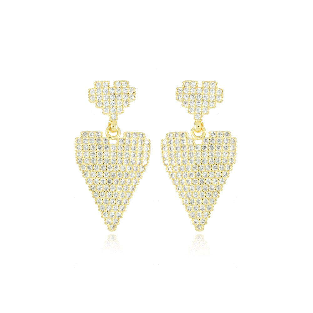 Encante-se com esse brinco!Este lindo brinco CORAÇÃO CRAVEJADO CRISTAL é feito com LATÃO BANHADO A OURO 18K de alta qualidade.