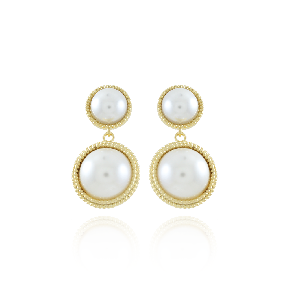 Este lindo brinco DE PÉROLA REDONDO é feito com LATÃO BANHADO A OURO 18K de alta qualidade.Com design único e elegante, que garante EXCELENTES VENDAS.