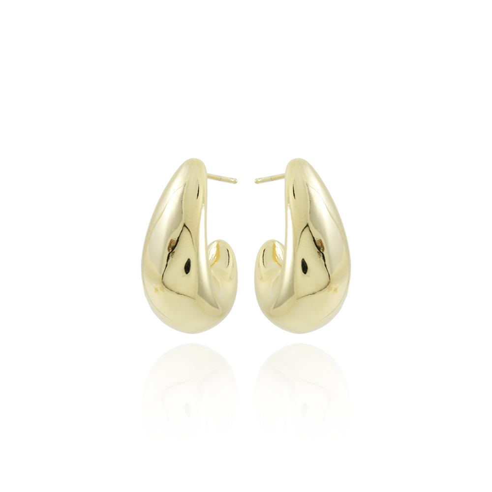 Encante-se com esse brinco!Este lindo brinco MEIA ARGOLA LISA é feito com LATÃO BANHADO A OURO 18K de alta qualidade.