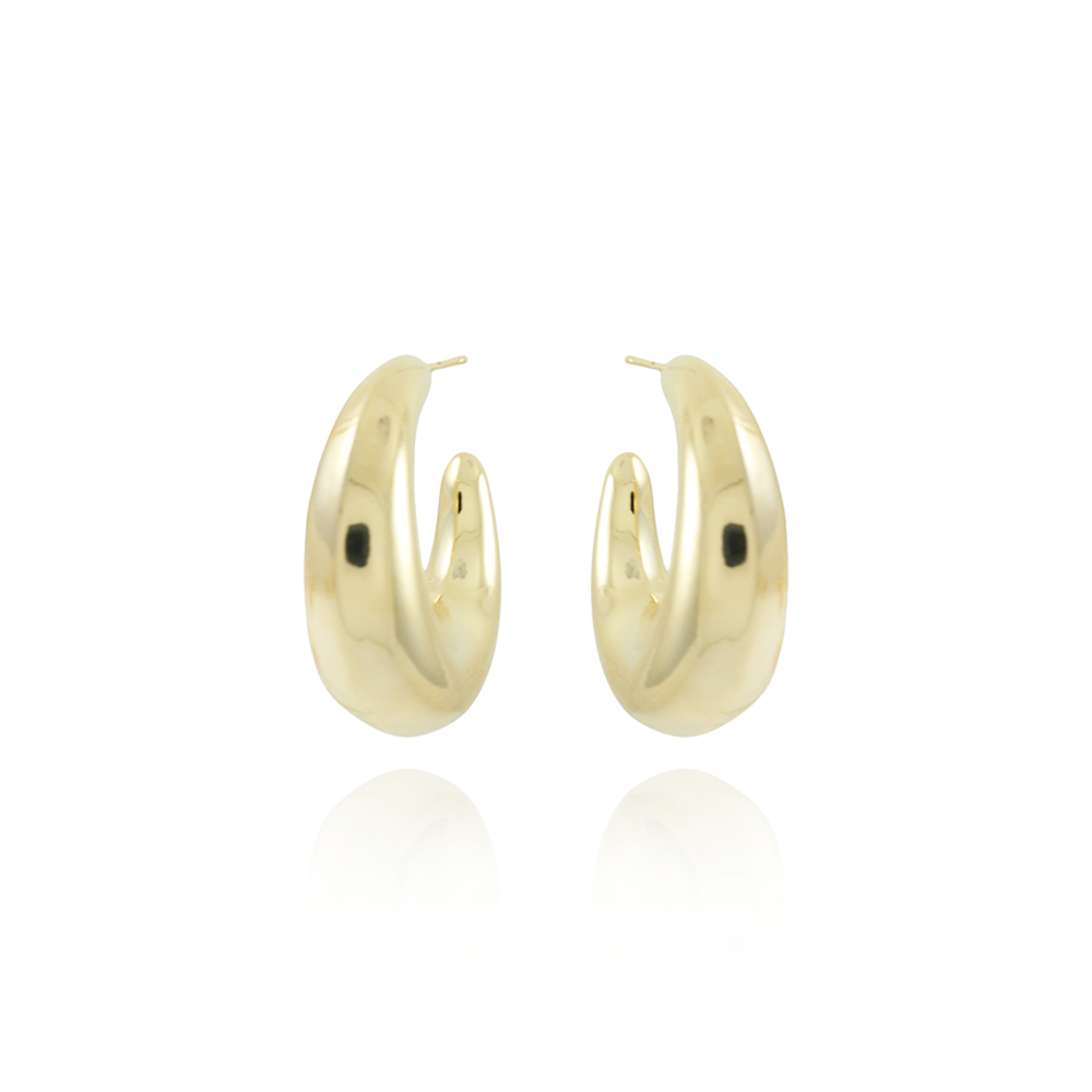 Encante-se com esse brinco!Este lindo brinco MEIA ARGOLA LISO é feito com LATÃO BANHADO A OURO 18K de alta qualidade.