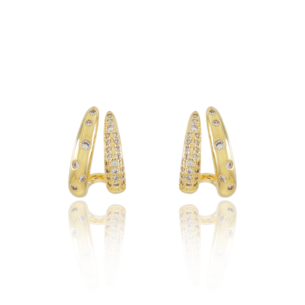 Encante-se com esse brinco!Este lindo brinco CRAEJADO DE ZIRCÔNIAS CRISTAIS é feito com LATÃO BANHADO A OURO 18K de alta qualidade.