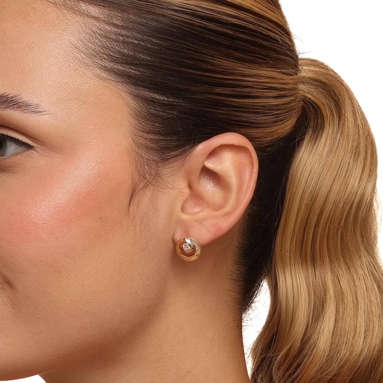 Encante-se com a delicadeza e o design artístico do Brinco Moderno Espiral Cravejado Com Ponto de Luz. Esta peça apresenta uma silhueta fluida que envolve um ponto de luz central, complementada por uma linha sutil de zircônias cravejadas que acompanham a curvatura do metal. É a união perfeita entre a modernidade das formas orgânicas e o brilho eterno da alta joalheria.Como você pode ver na modelo, este brinco possui um tamanho ideal para quem busca uma peça com presença, mas que mantém a leveza e a elegância. Seu formato vazado traz um ar de sofisticação contemporânea, tornando-o o acessório perfeito para elevar qualquer look, desde o básico casual até produções mais elaboradas. Uma semijoia versátil que ilumina o rosto e demonstra um cuidado impecável com o estilo pessoal.