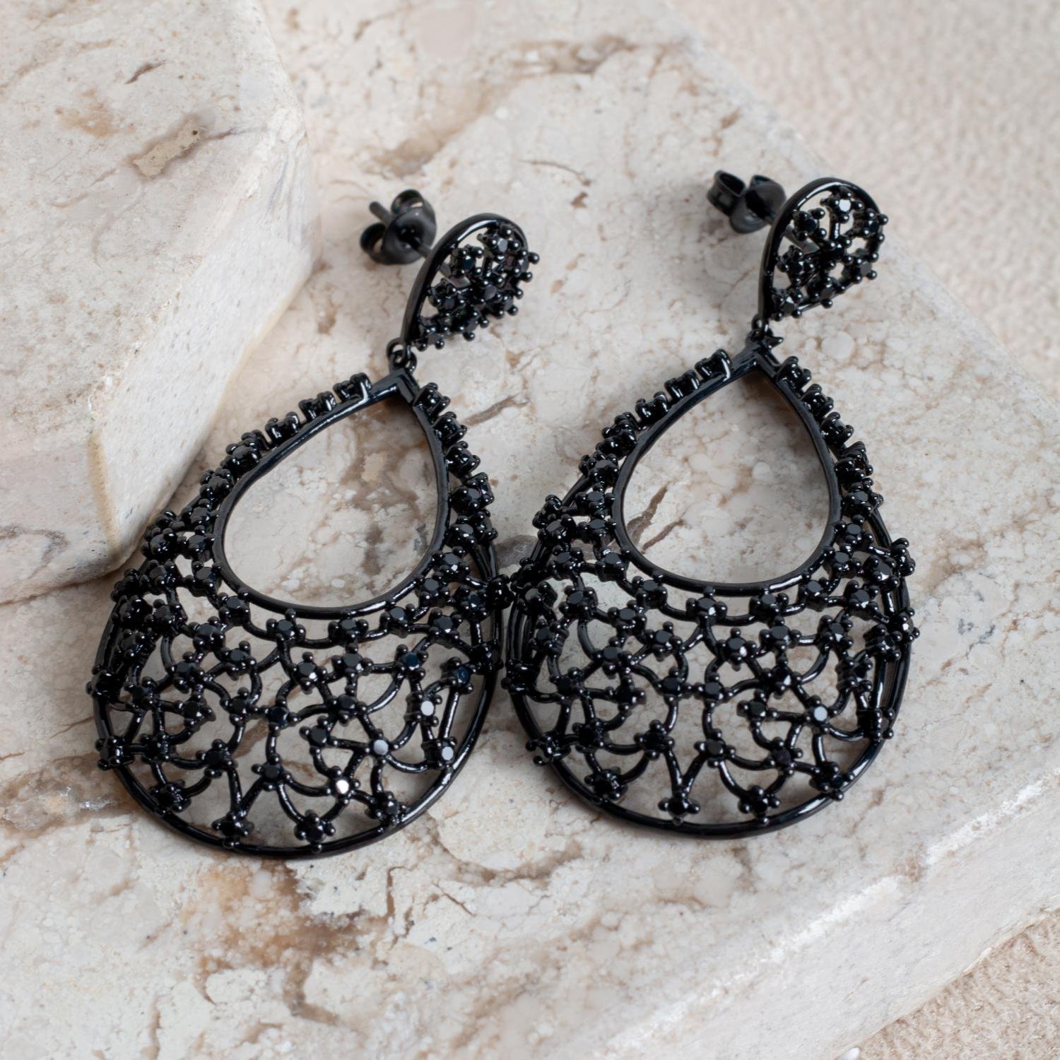 Encante-se com esse brinco!Este lindo brinco MÉDIO DETALHADO PRETO é banhado a BANHO ITALIANO de alta qualidade.