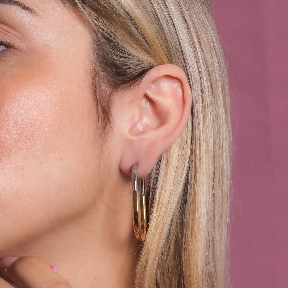 Encante-se com esse brinco!Este lindo brinco DE ARGOLA ARTICULADA DUO é feito com LATÃO BANHADO A OURO 18K + RÓDIO BRANCO de alta qualidade.