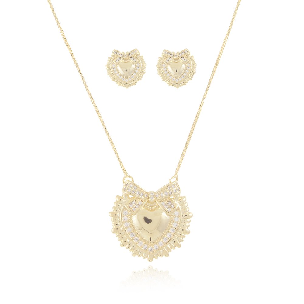 Cj-1002-Fo Conjunto Coração Cravejado De Zircônias Detalhado.