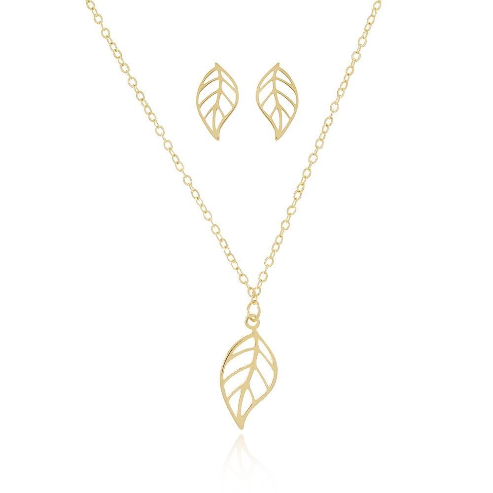 Encante-se com esse conjunto!Este lindo conjunto DE FOLHA é feito com LATÃO BANHADO A OURO 18K de alta qualidade.