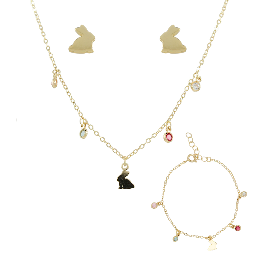 Cjls-3666-Fo Conjunto Infantil De Coelhinho Colorido (Brinco + Colar 35cm+5cm + Pulseira).