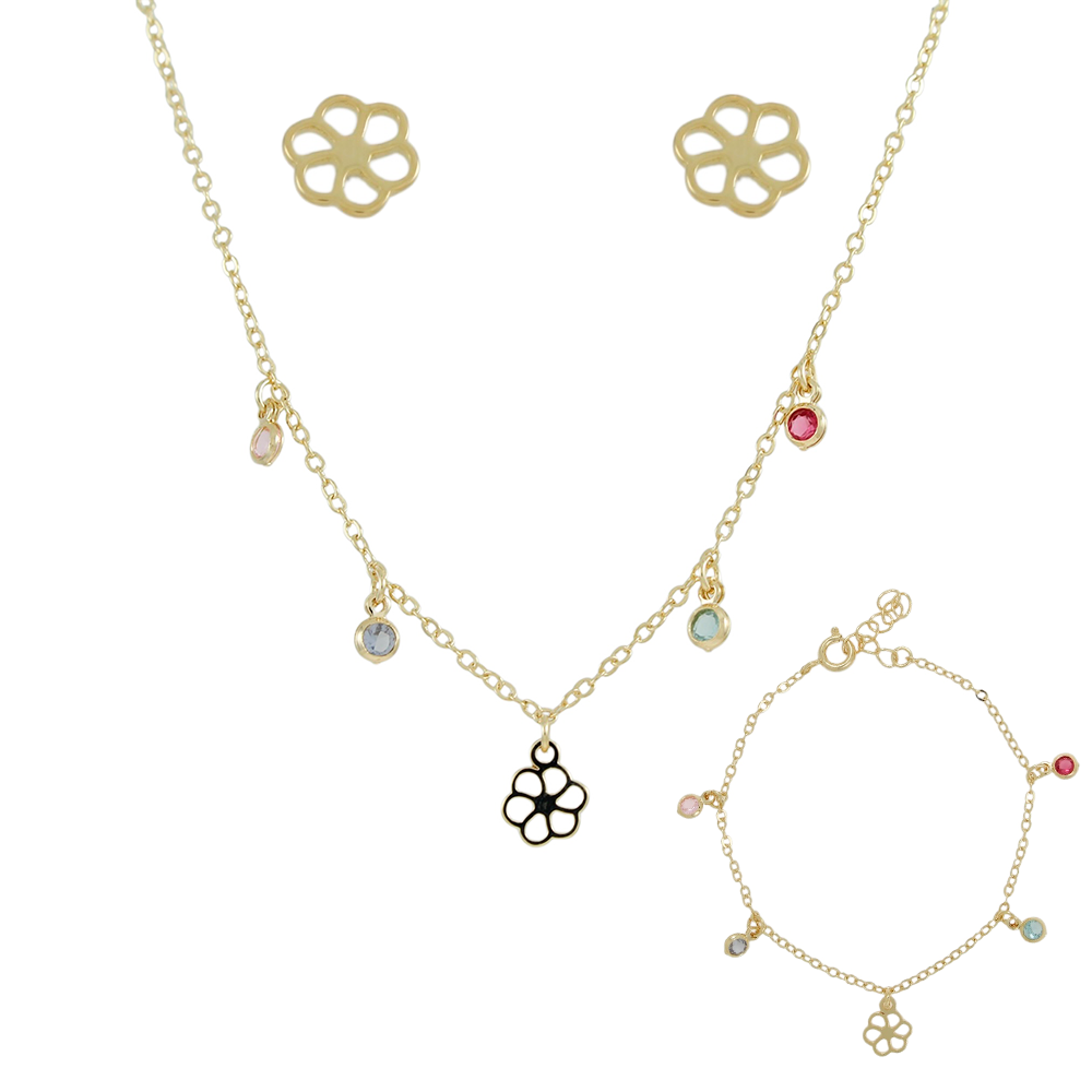 Cjls-3712-Fo Conjunto Infantil De Florzinha Colorido (Brinco + Colar 35cm+5cm + Pulseira).