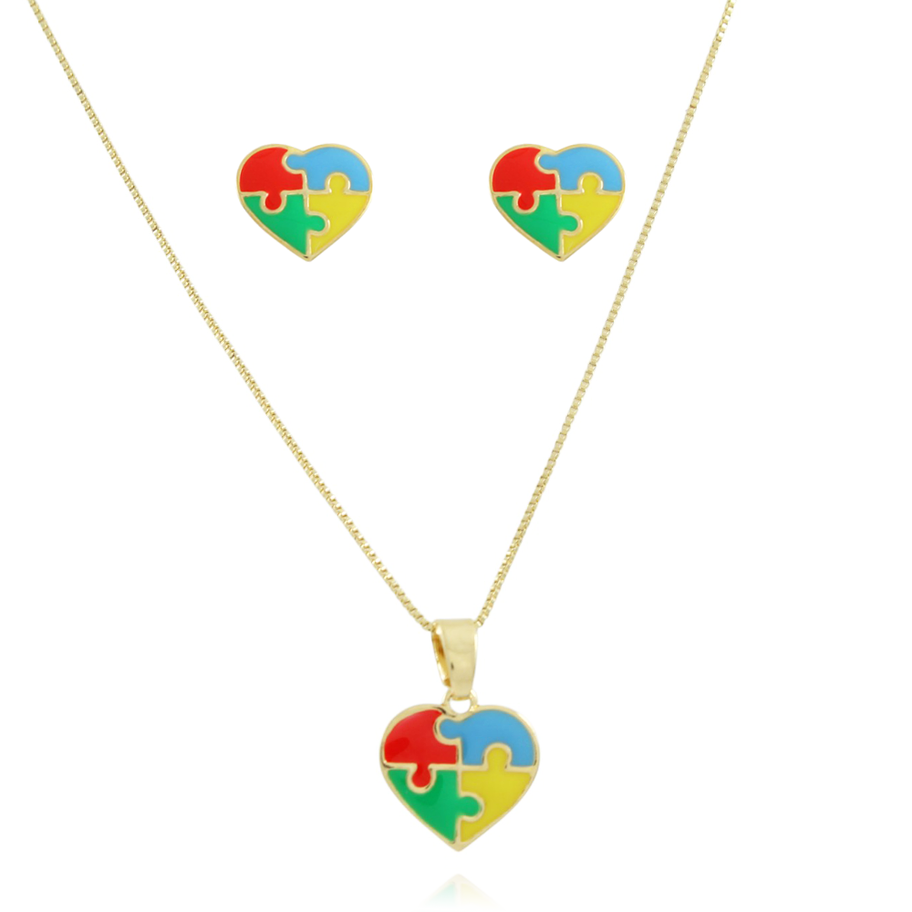 Encante-se com esse conjunto!Este lindo conjunto TEA CORAÇÃO RESINADO é feito com LATÃO BANHADO A OURO 18K de alta qualidade.