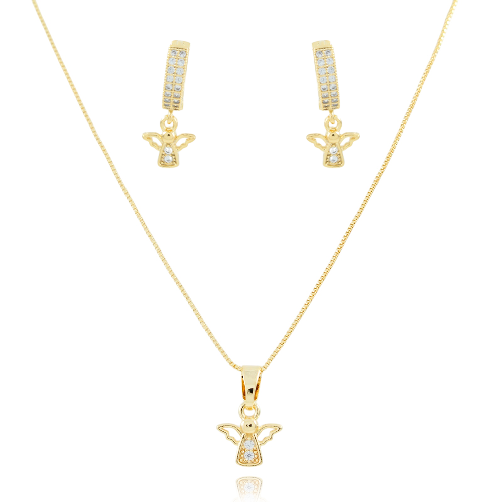 Conjunto de Anjinho Cravejado com Micro Zircônias.Dimensões / Peso :
