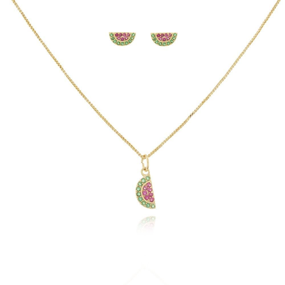 Encante-se com esse conjunto!Este lindo conjunto MELANCIA é feito com LATÃO BANHADO A OURO 18K de alta qualidade.