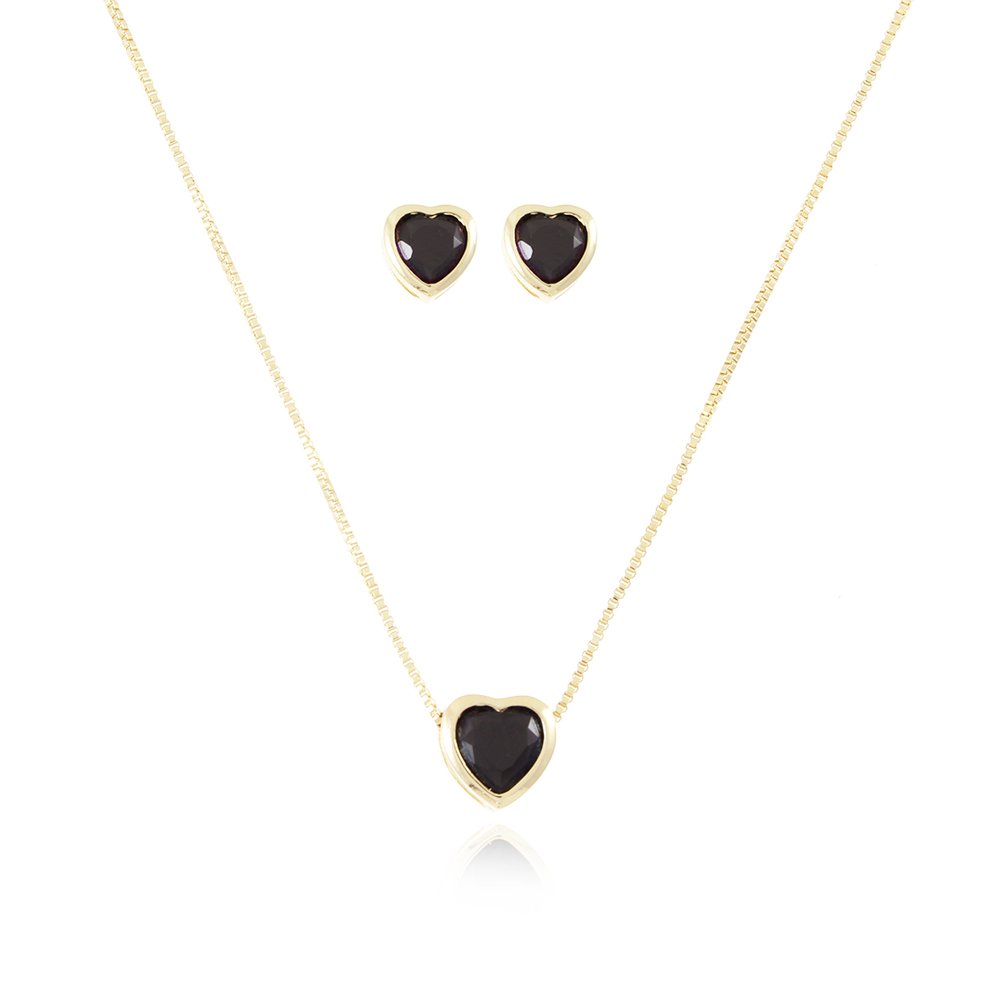 Cjt-463-Fo (40cm+5cm) Conjunto De Coração Com Zircônia Preta.