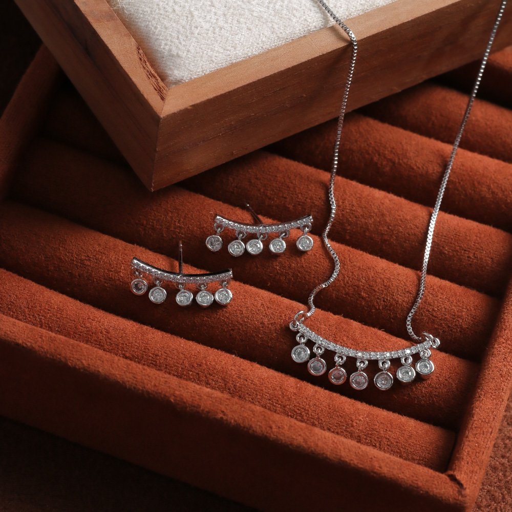 Cjt-654-Rd Conjunto Bolinhas De Zircônias Suspensas Coloridas - Ródio Branco (21x21cm+5cm).