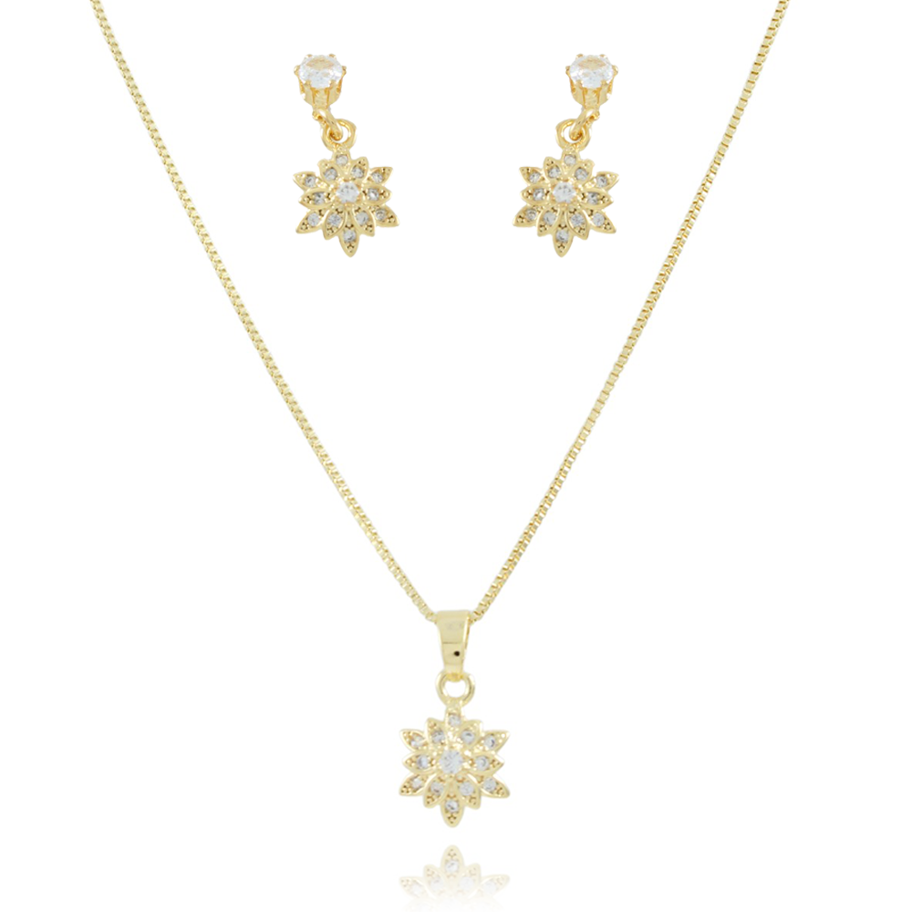 Encante-se com esse conjunto!Este lindo conjunto é feito com LATÃO BANHADO A OURO 18K de alta qualidade.