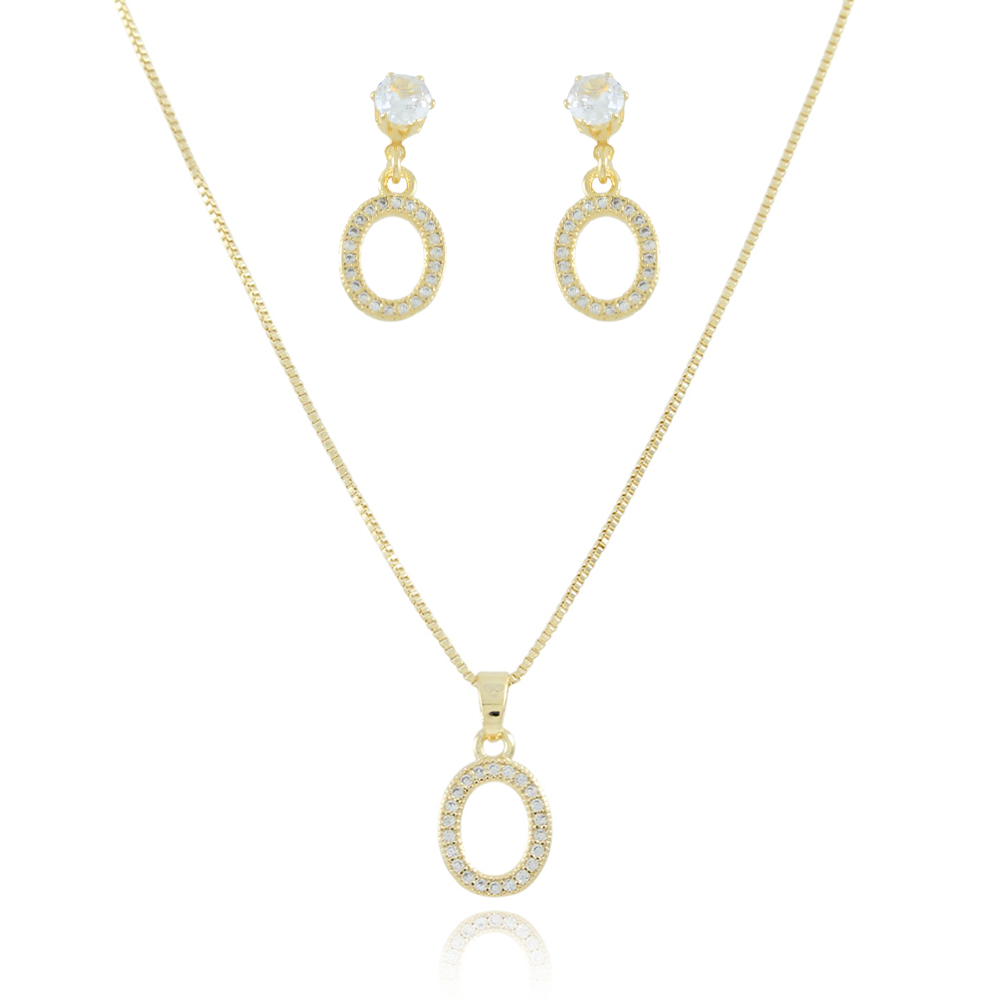 Encante-se com esse conjunto!Este lindo conjunto OVAL CRAVEJAO DE ZIRCÔNIAS CRISTAIS é feito com LATÃO BANHADO A OURO 18K de alta qualidade.