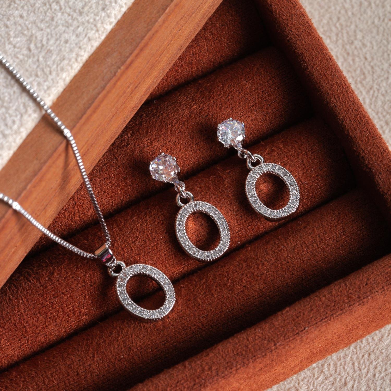 Encante-se com esse conjunto!Este lindo conjunto OVAL CRAVEJADO CRISTAL é feito com LATÃO BANHADO A RÓDIO BRANCO de alta qualidade.