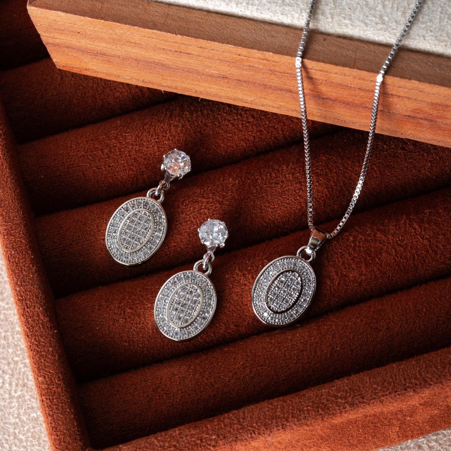 Encante-se com esse conjunto!Este lindo conjunto CRAVEJADO DE ZIRCÔNIAS CRISTAIS é feito com LATÃO BANHADO A RÓDIO BRANCO de alta qualidade.