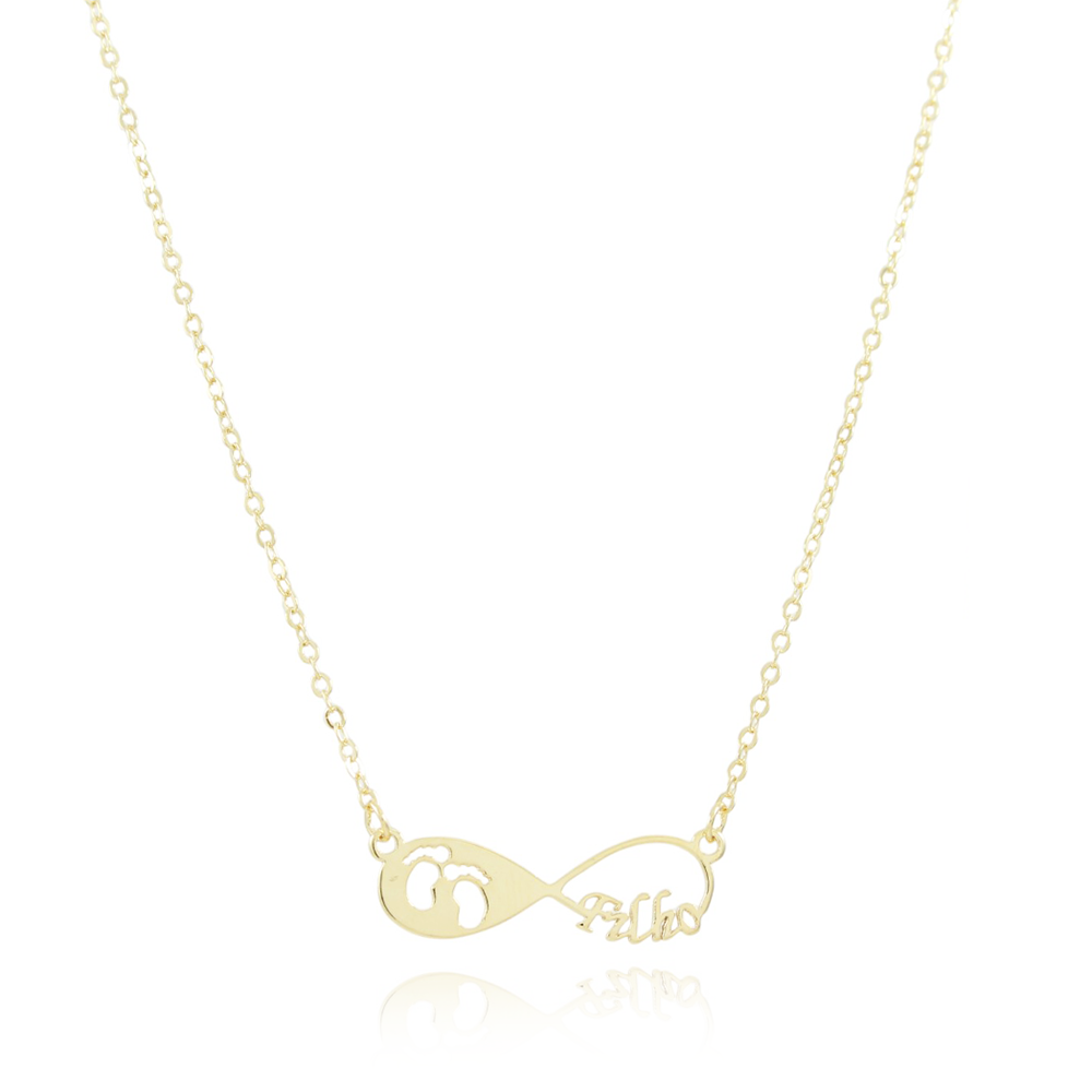 Encante-se com esse colar!Este lindo colar INFINITO FILHO COM PÉZINHOS é feito com LATÃO BANHADO A OURO 18K de alta qualidade.