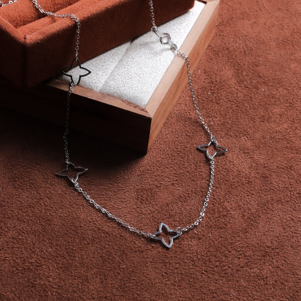 Encante-se com esse colar!Este lindo colar TREVO VAZADO é feito com LATÃO BANHADO A RÓDIO BRANCO de alta qualidade.