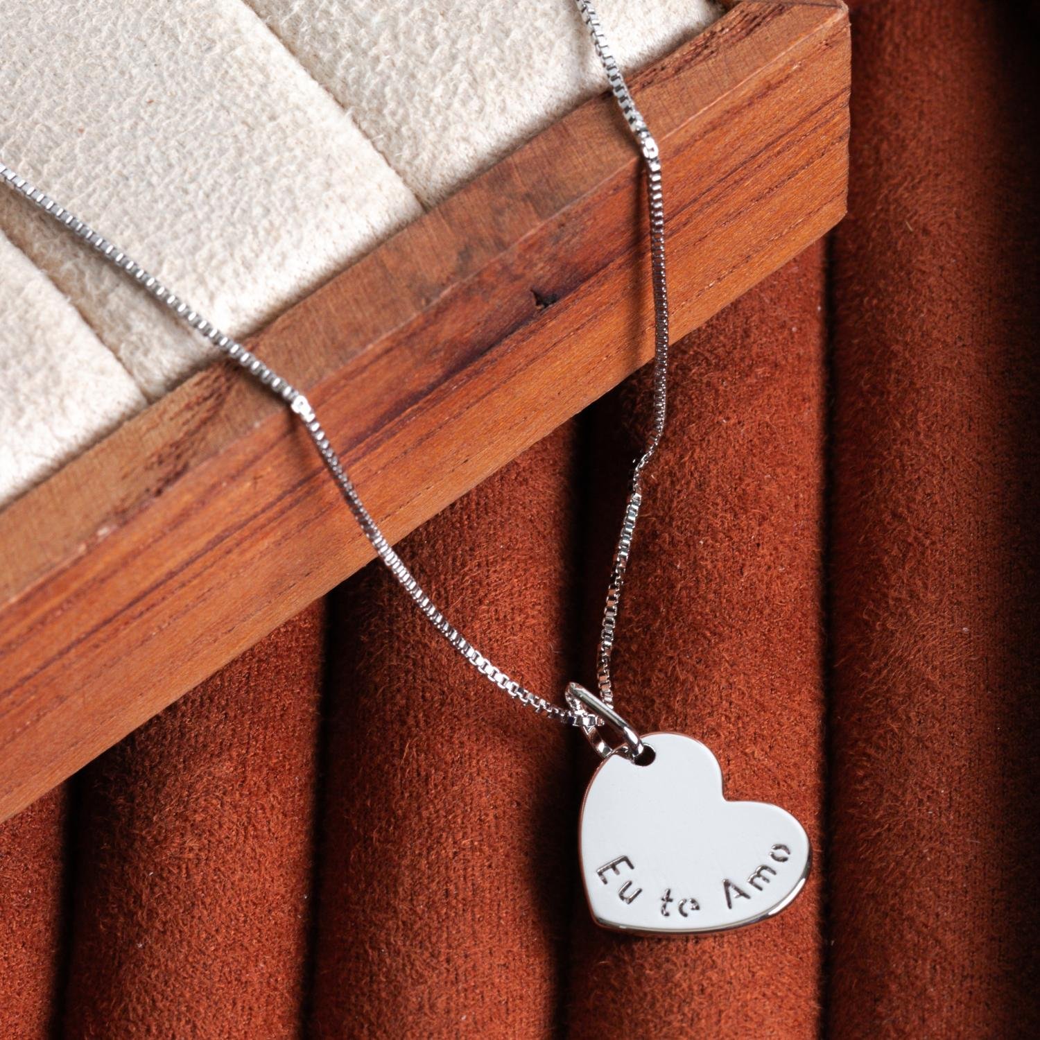 Encante-se com esse colar!Este lindo colar DE CORAÇÃO EU TE AMO é feito com LATÃO BANHADO A RÓDIO BRANCO de alta qualidade.