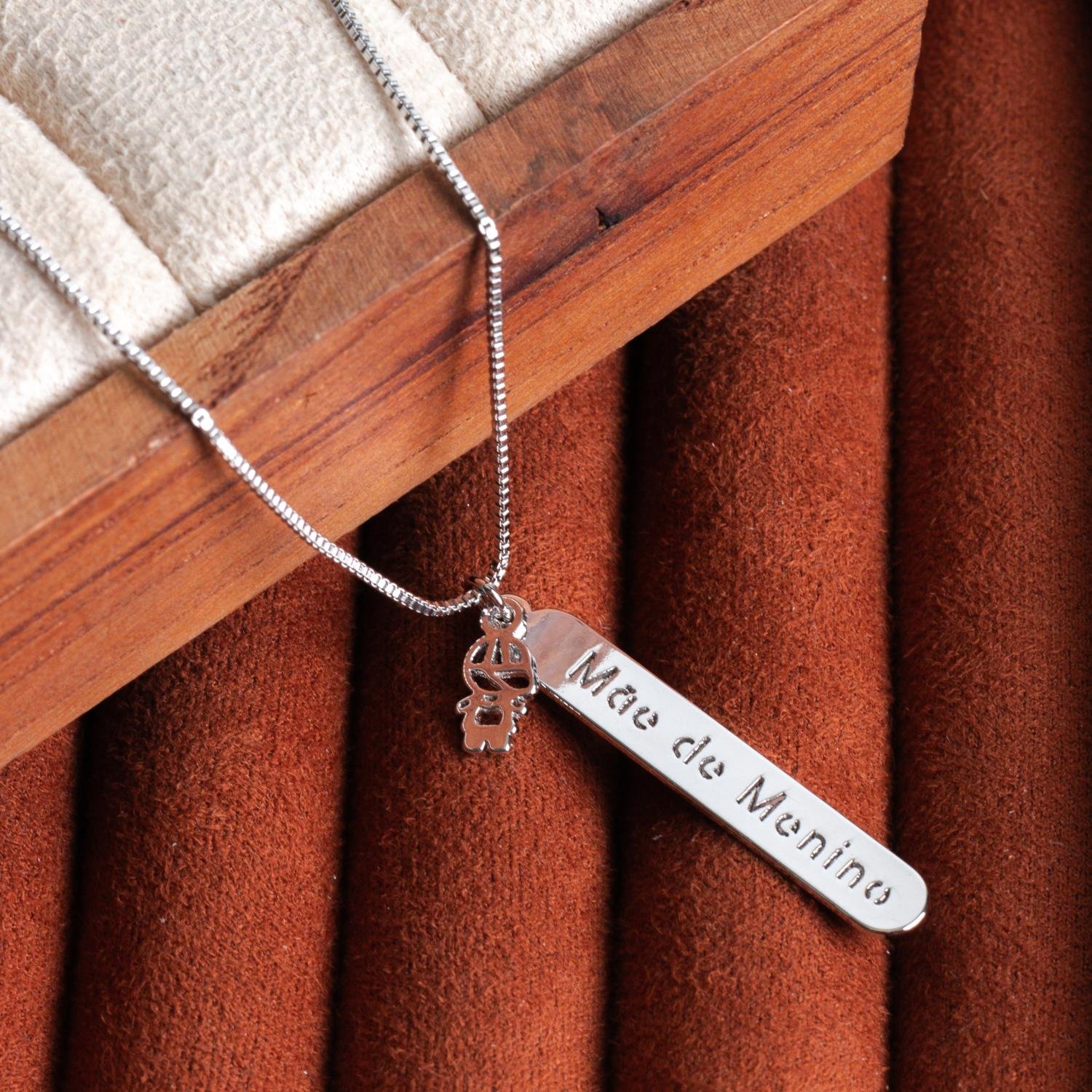 Encante-se com esse colar!Este lindo colar COM PLAQUINHA MÃE DE MENINO E PINGENTE DE MENINO é feito com LATÃO BANHADO A RÓDIO BRANCO de alta qualidade.