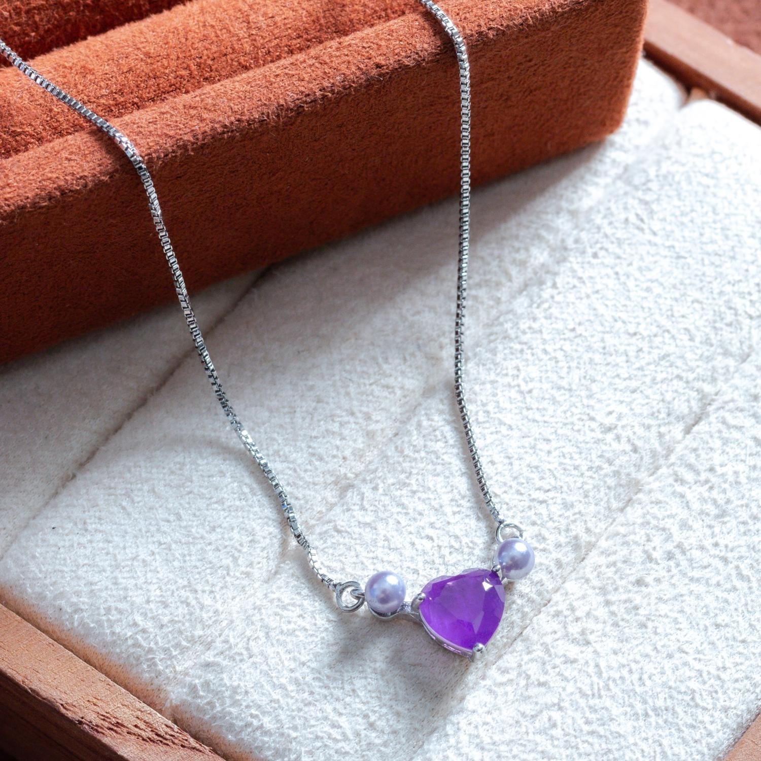 Encante-se com esse colar!Este lindo colar COM PINGENTE DE CORAÇÃO ROXO é feito com LATÃO BANHADO A RÓDIO BRANCO de alta qualidade.