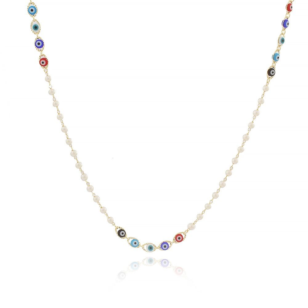 Clt-3080-Fo (84cm) Colar Micro Pérolas E Olho Grego Color
