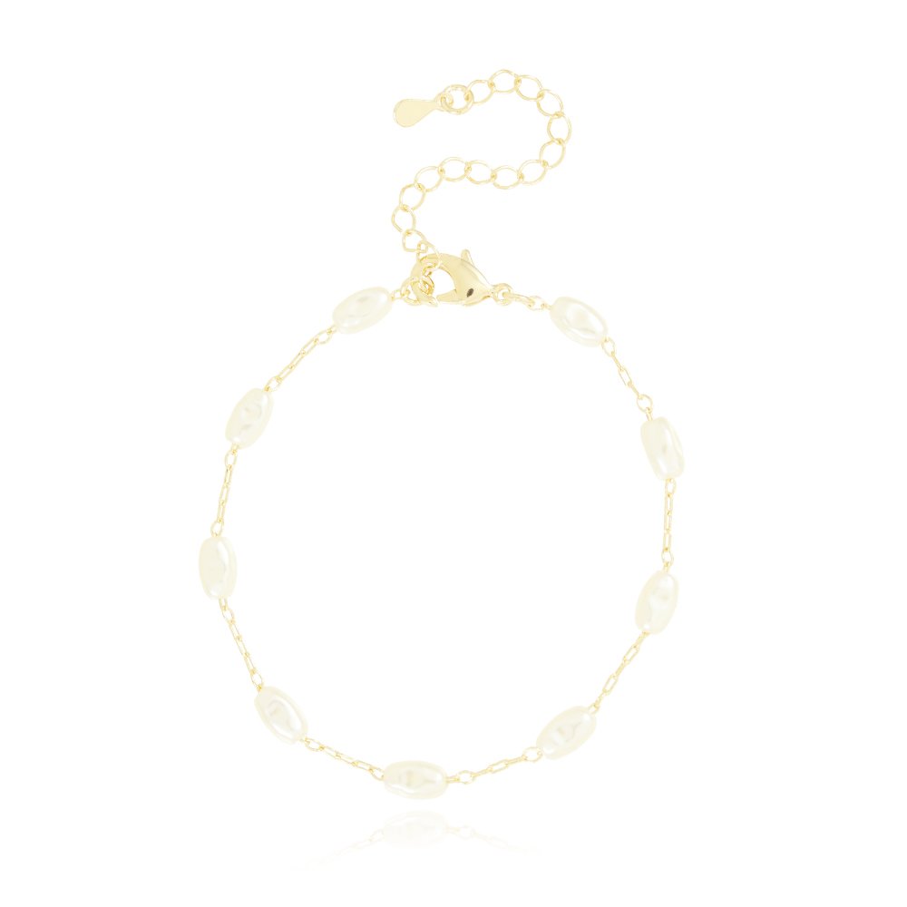 Encante-se com essa pulseira!Esta linda PULSEIRA DE PÉROLAS é feita com LATÃO BANHADO A OURO 18K de alta qualidade.