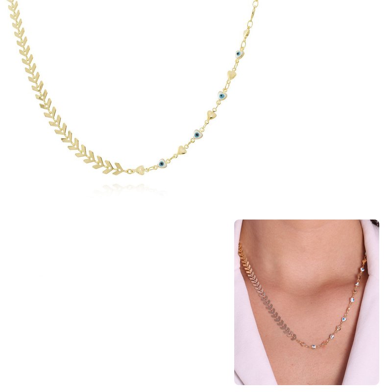 Clt-5322-Fo Colar Escama Peixe, Coração Olho Grego 50cm+10cm