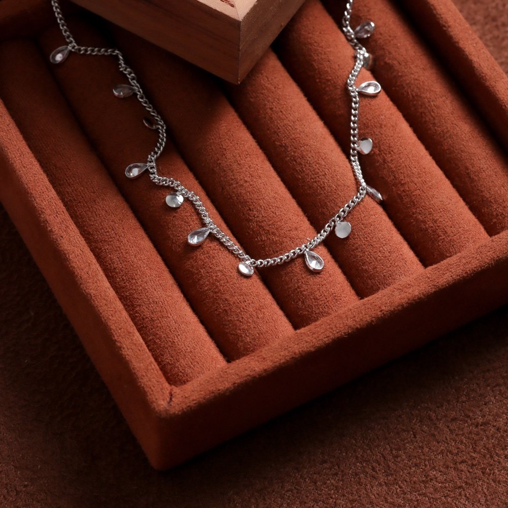 Encante-se com esse colar!Este lindo colar CHOKER COM PONTOS DE LUZ GOTA E BOLINHAS ACHATADAS é feito com LATÃO BANHADO A RÓDIO BRANCO de alta qualidade.