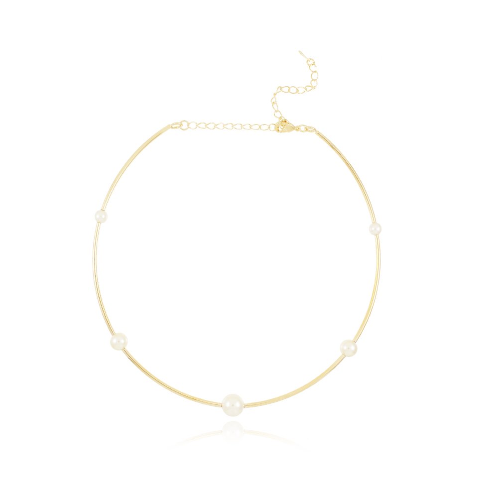 Clt-5703-Fo Choker De Aro Com Pérolas.