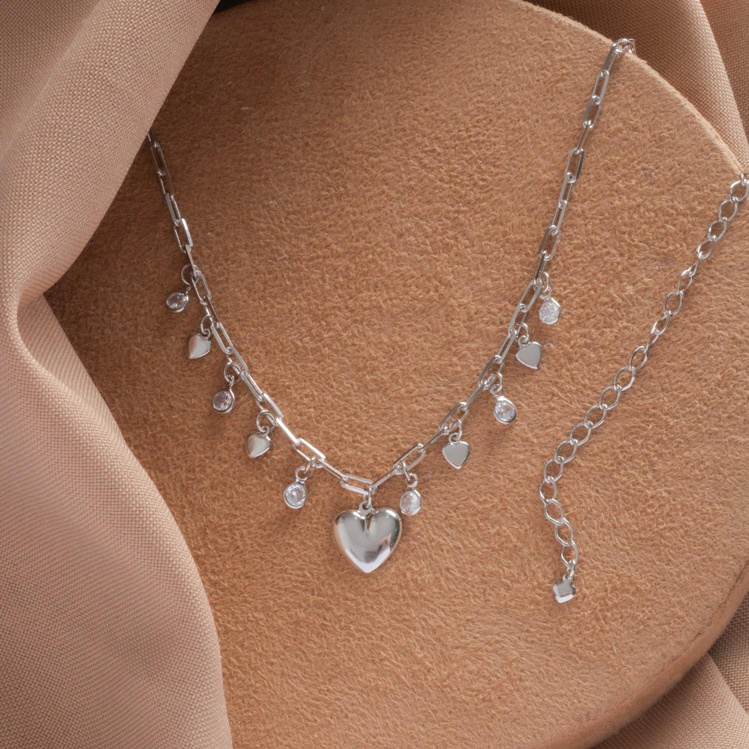 Clt-5827-Rd Choker Com Pingentes De Zircônias E Coração - Ródio Branco (30cm+10cm).