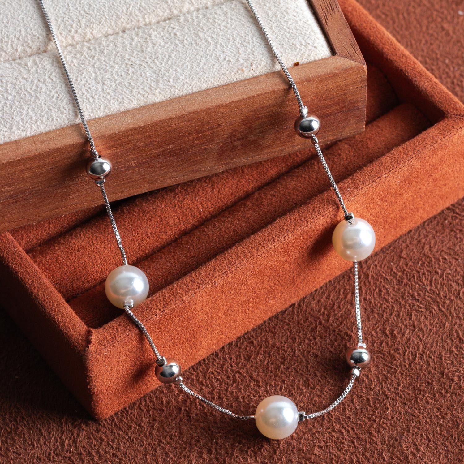 Encante-se com esse colar!Este lindo colar PÉROLAS E BOLINHAS é feito com LATÃO BANHADO A RÓDIO BRANCO de alta qualidade.