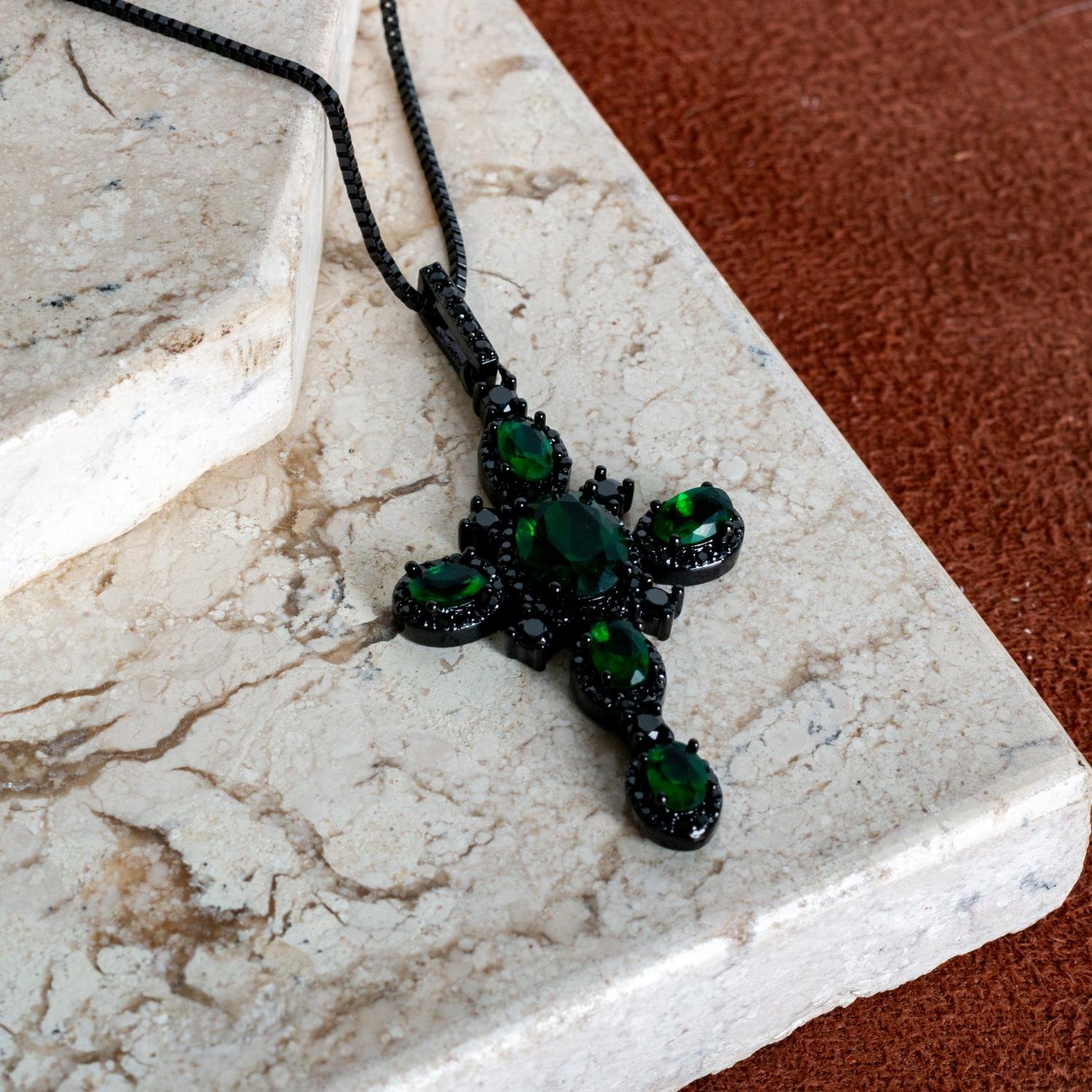Encante-se com esse colar!Este lindo colar GOLD DE CRUZ CRAVEJADO VERDE ESMERALDA é banhado a BANHO ITALIANO de alta qualidade.