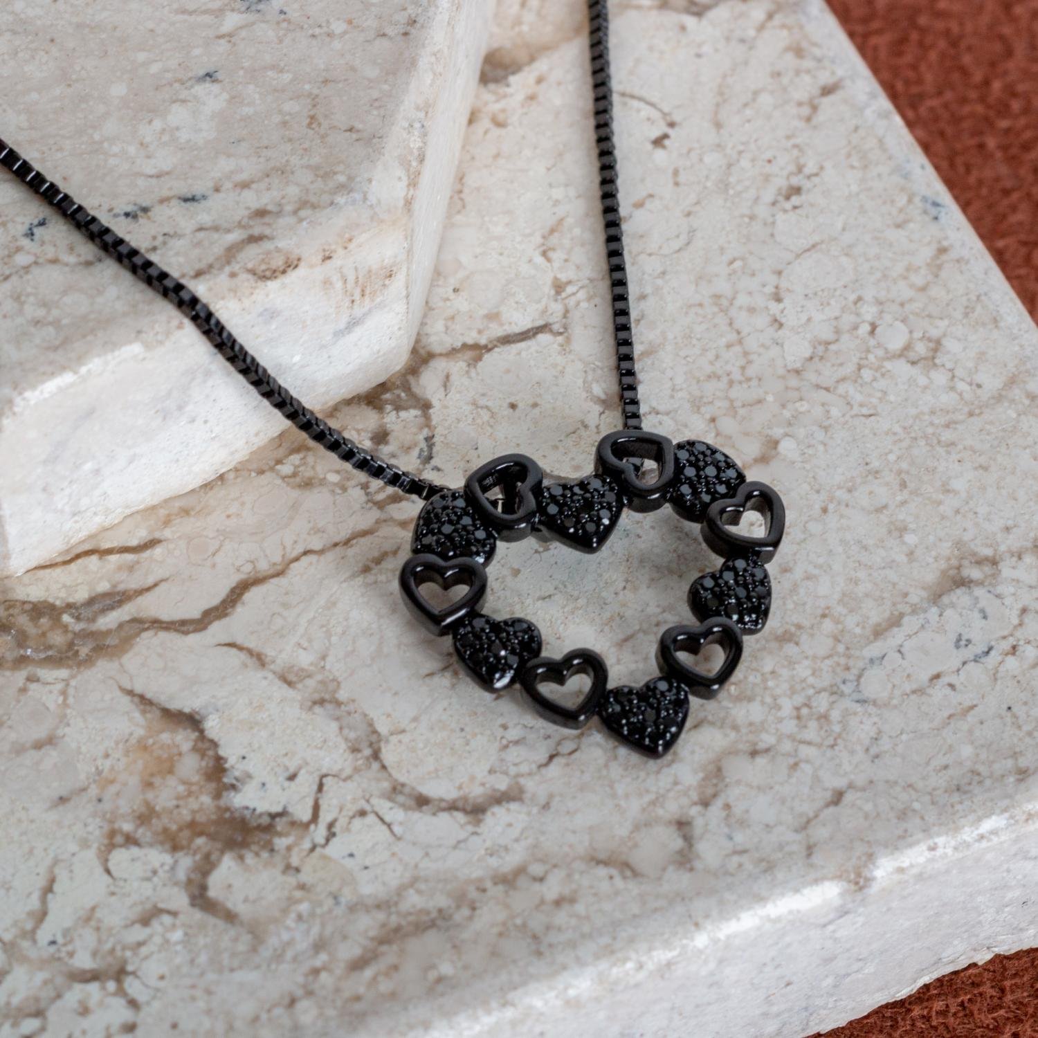 Encante-se com esse colar!Este lindo colar DE CORAÇÃO CRAVEJADO PRETO é banhado a BANHO ITALIANO de alta qualidade.