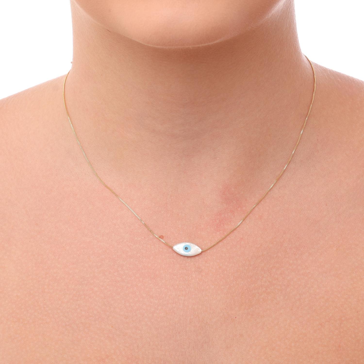 Encante-se com esse colar!Este lindo colar de olho grego - 7mm. é feito com LATÃO BANHADO A OURO 18K de alta qualidade.