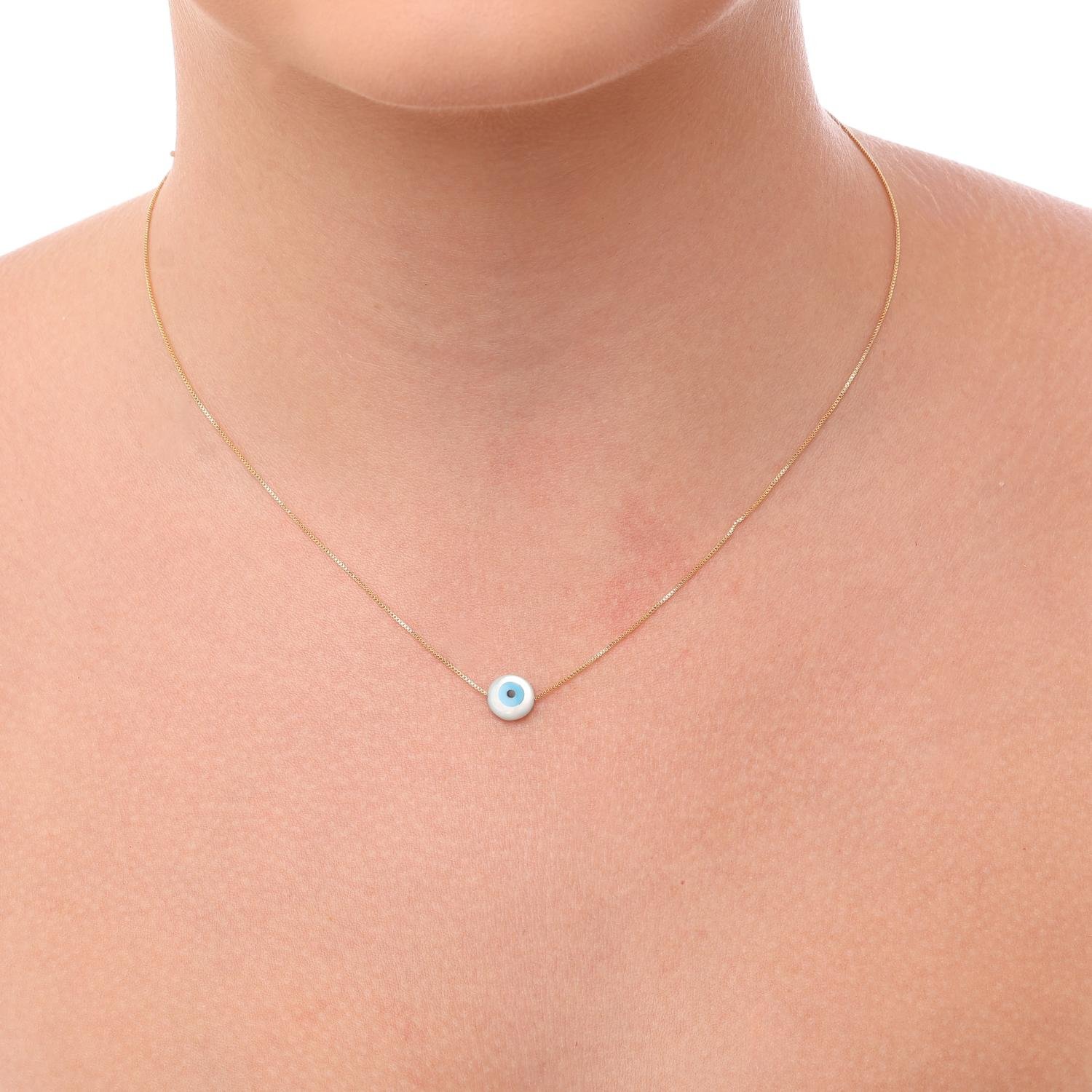 Encante-se com esse colar!Este lindo colar de olho grego em mafrepérola. é feito com LATÃO BANHADO A OURO 18K de alta qualidade.