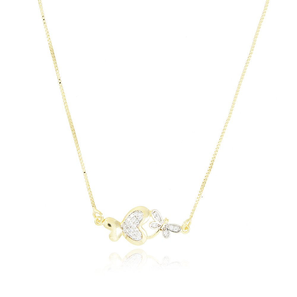 Encante-se com esse colar!Este lindo colar COLAR BORBOLETA E LIBÉLULA CRAVEJADA é feito com LATÃO BANHADO A OURO 18K de alta qualidade.